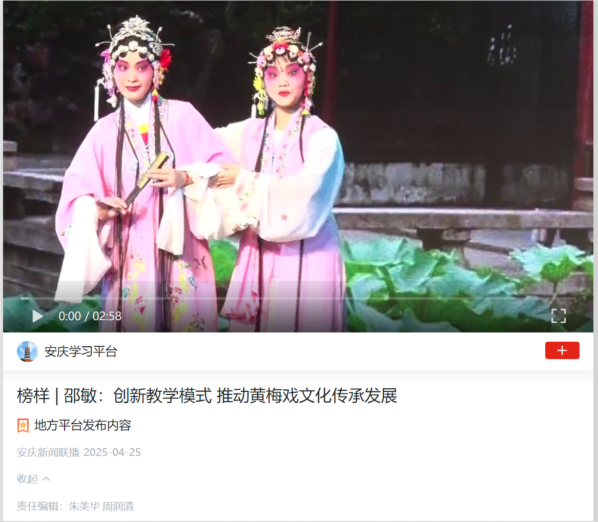 下一篇:学习强国:邵敏:在黄梅戏教学与传承中绽放巾帼风采