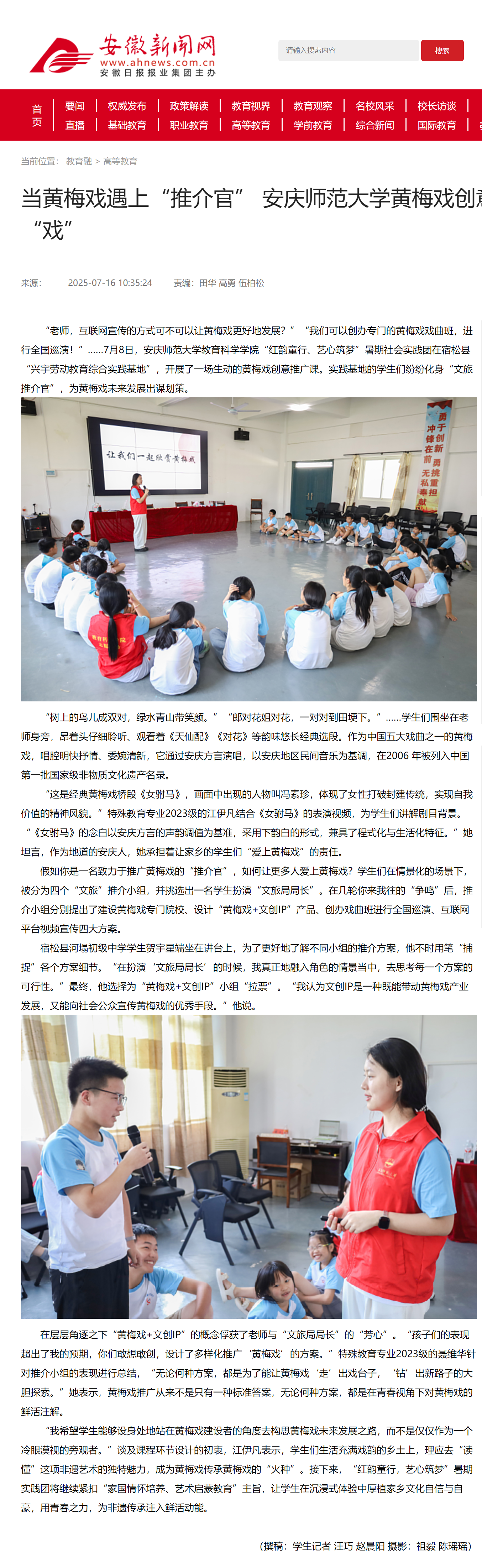 下一篇:安徽新闻网:以青春脚步丈量乡土 安庆师大学子用专业镜头激活乡村“一茶一戏”