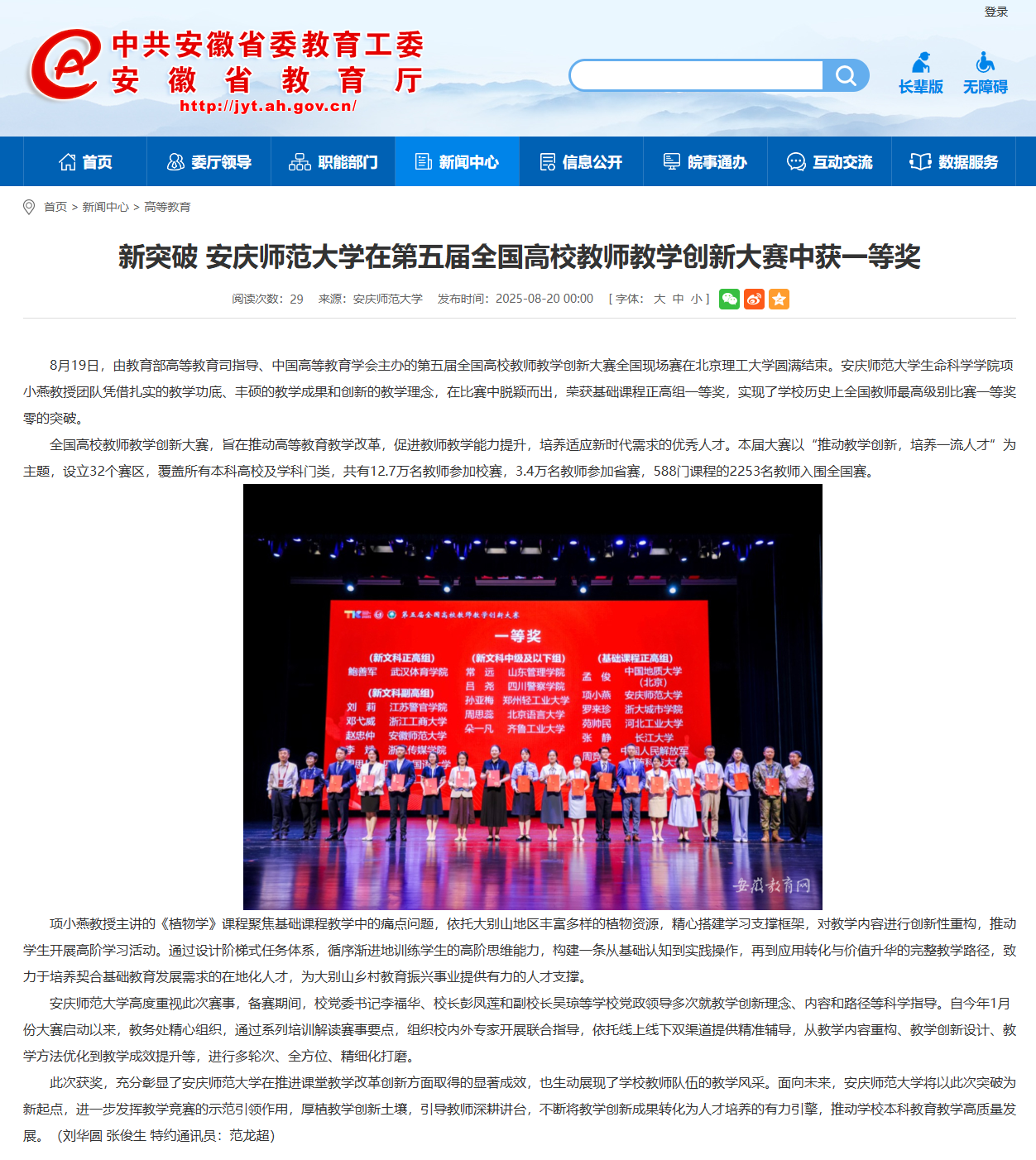 【安徽新闻网】新突破 beat365英国官网网站在第五届全国高校教师教学创新大赛中获一等奖https://jyt.ah.gov.cn/xwzx/gdjy/40760820.html