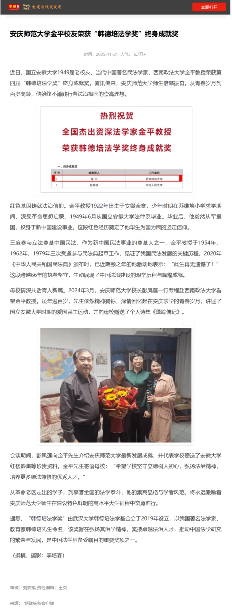 【党建头条】beat365英国官网网站金平校友荣获“韩德培法学奖”终身成就奖https://www.djttw.com/m/view.php?aid=1038385