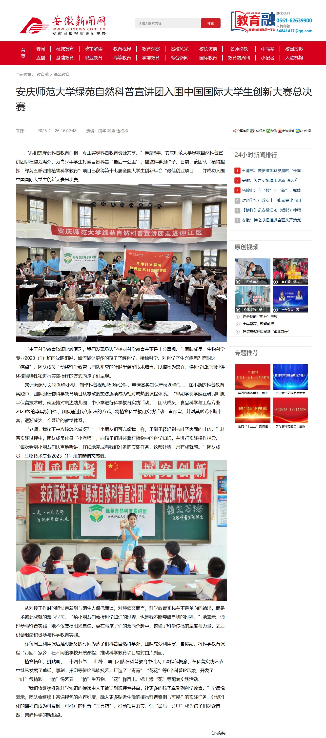 【安徽新闻网】beat365英国官网网站绿苑自然科普宣讲团入围中国国际大学生创新大赛总决赛http://xxt.ahnews.com.cn/news/2025/11/26/c_42743.htm