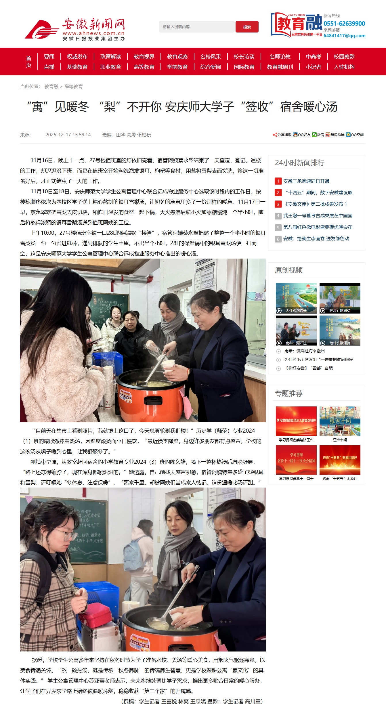 【安徽新闻网】“寓”见暖冬 “梨”不开你 安庆师大学子“签收”宿舍暖心汤http://xxt.ahnews.com.cn/news/2025/12/17/c_43613.htm