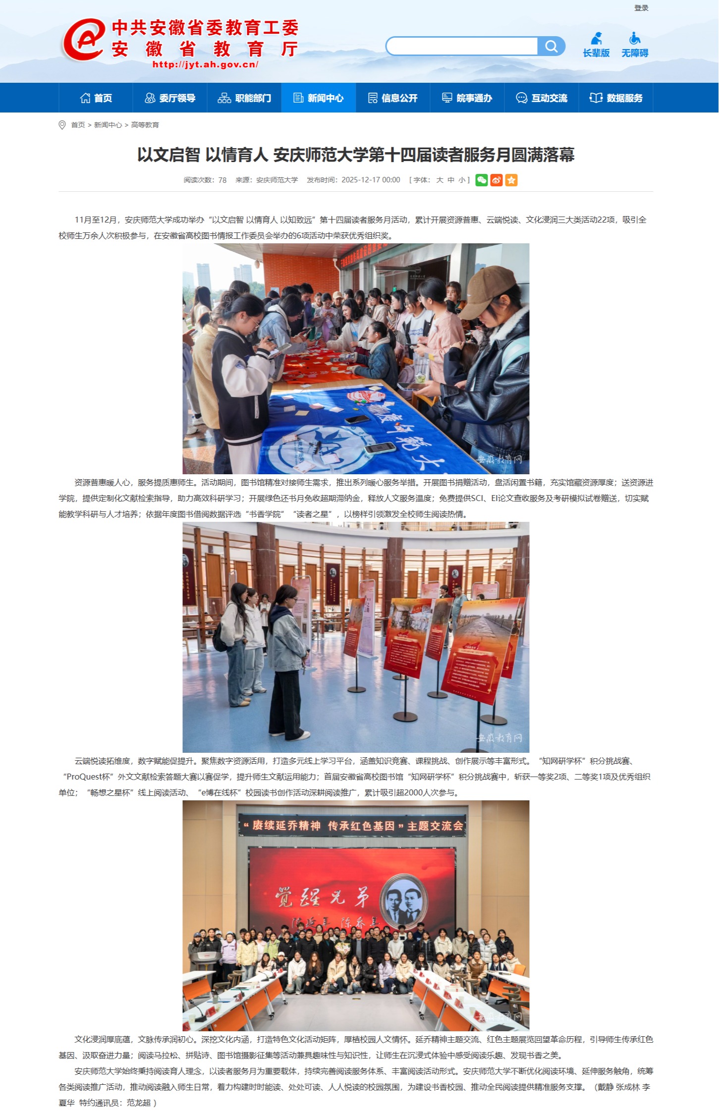 【安徽教育网】以文启智 以情育人 beat365英国官网网站第十四届读者服务月圆满落幕https://jyt.ah.gov.cn/xwzx/gdjy/40776782.html