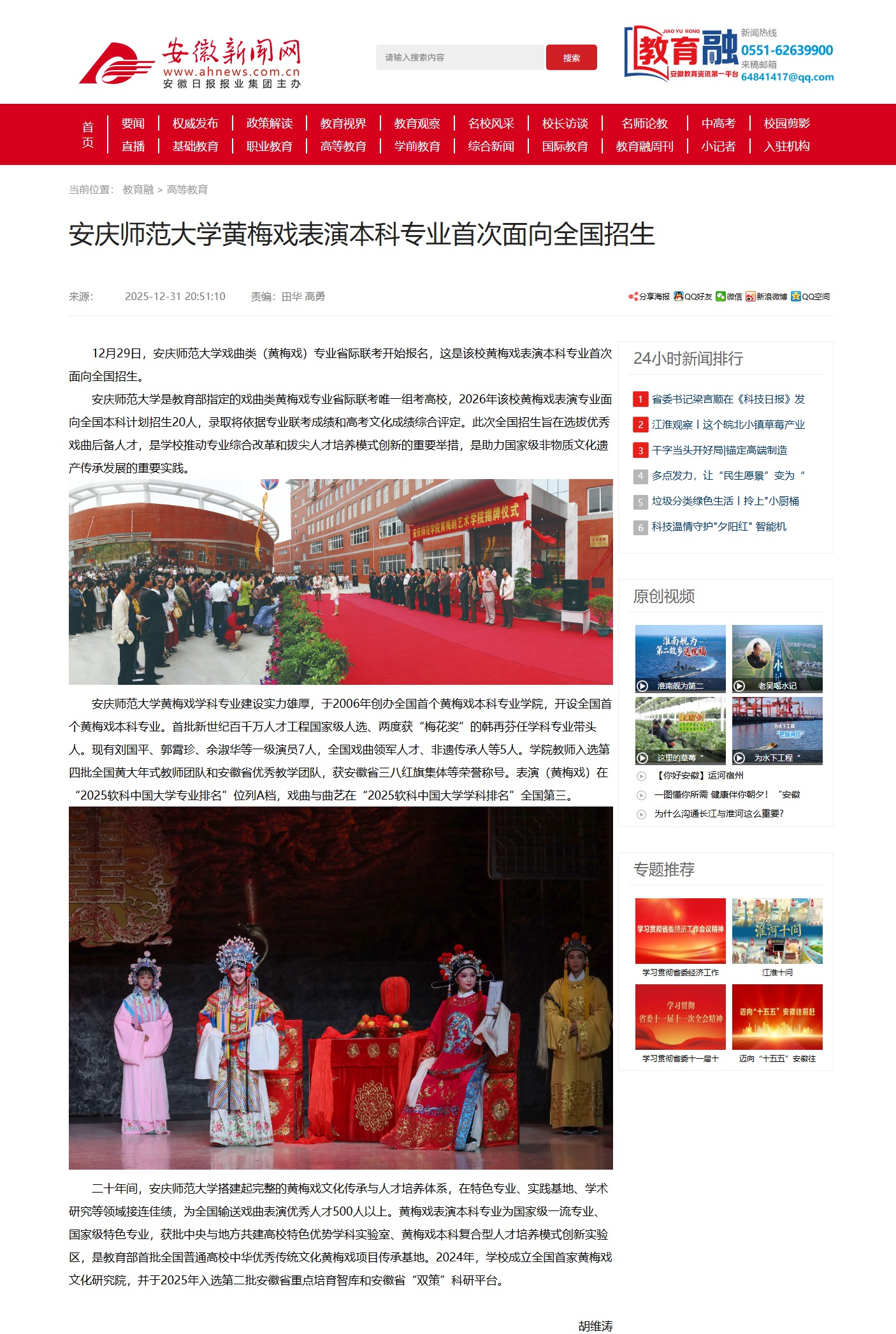 【安徽新闻网】beat365英国官网网站黄梅戏表演本科专业首次面向全国招生http://xxt.ahnews.com.cn/news/2025/12/31/c_44218.htm