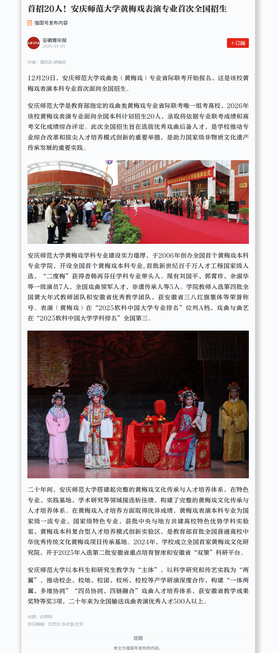 【学习强国】首招20人!beat365英国官网网站黄梅戏表演专业首次全国招生https://article.xuexi.cn/articles/index.html?art_id=16068450243458850344&source=share&study_style_id=feeds_opaque&reco_id=1036474fb8a0c0a8857e000v&share_to=wx_single&study_share_enable=1&study_comment_disable=0&ptype=0&item_id=16068450243458850344