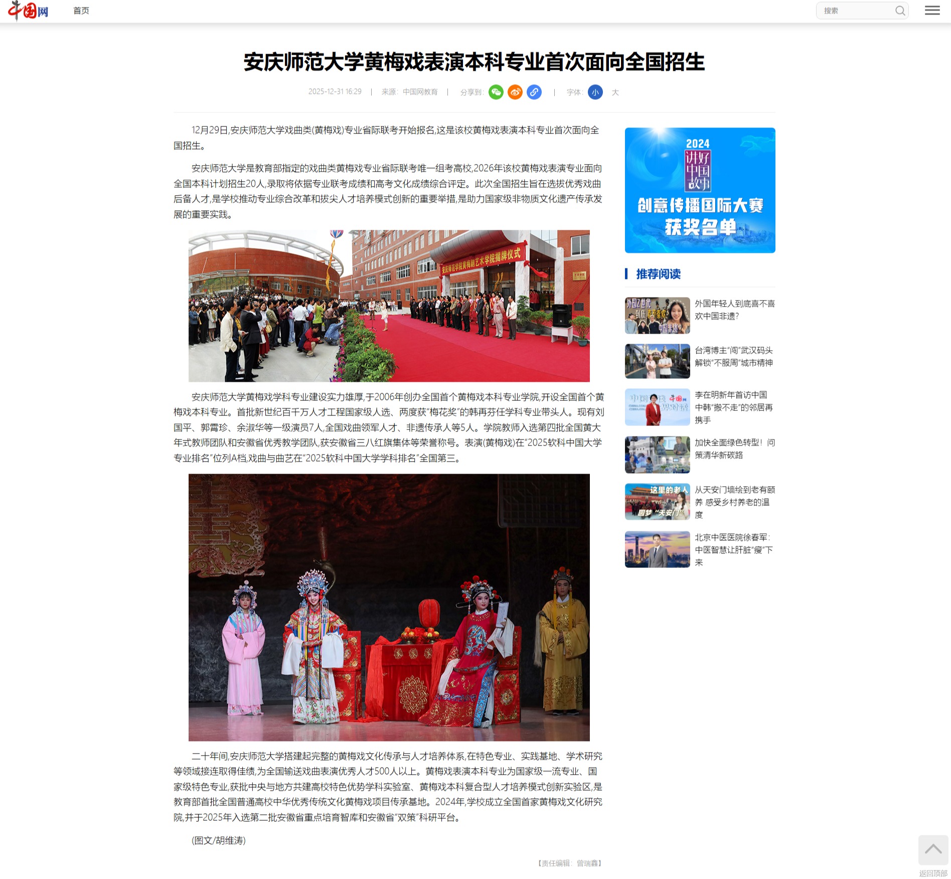 【中国网】beat365英国官网网站黄梅戏表演本科专业首次面向全国招生http://edu.china.com.cn/2025-12/31/content_118256010.shtml