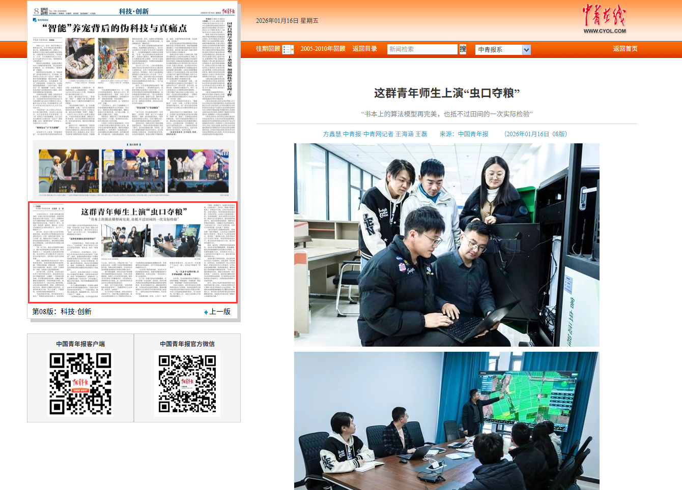 【中国青年报】这群青年师生上演“虫口夺粮”http://zqb.cyol.com/pc/content/202601/16/content_421249.html