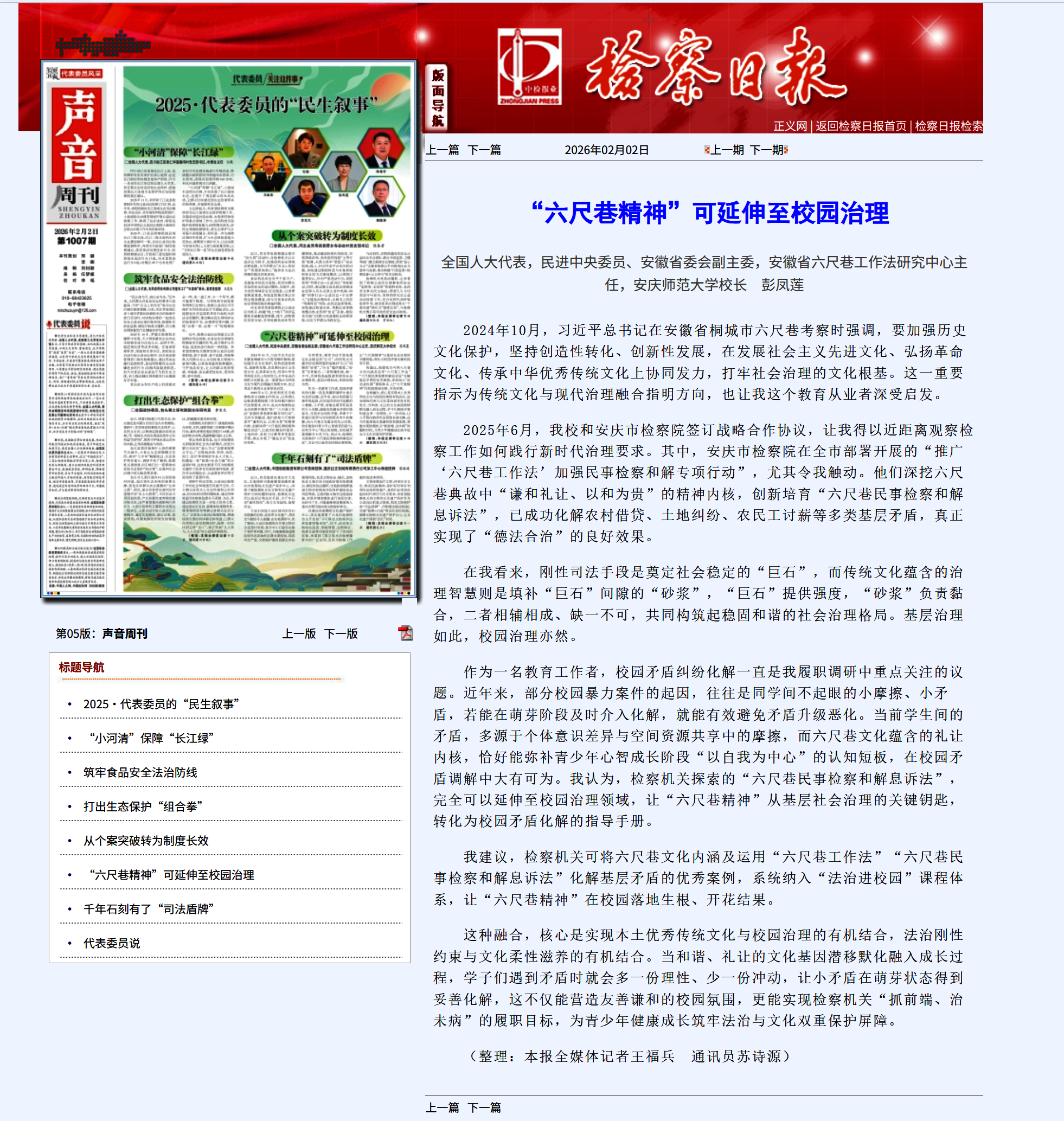 来源:【检察日报】“六尺巷精神”可延伸至校园治理https://newspaper.jcrb.com/2026/20260202/20260202_005/20260202_005_6.htm