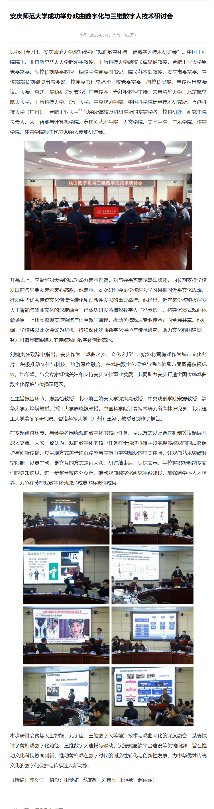 安徽新闻网:专家齐聚beat365英国官网网站探讨戏曲数字化与三维数字人技术