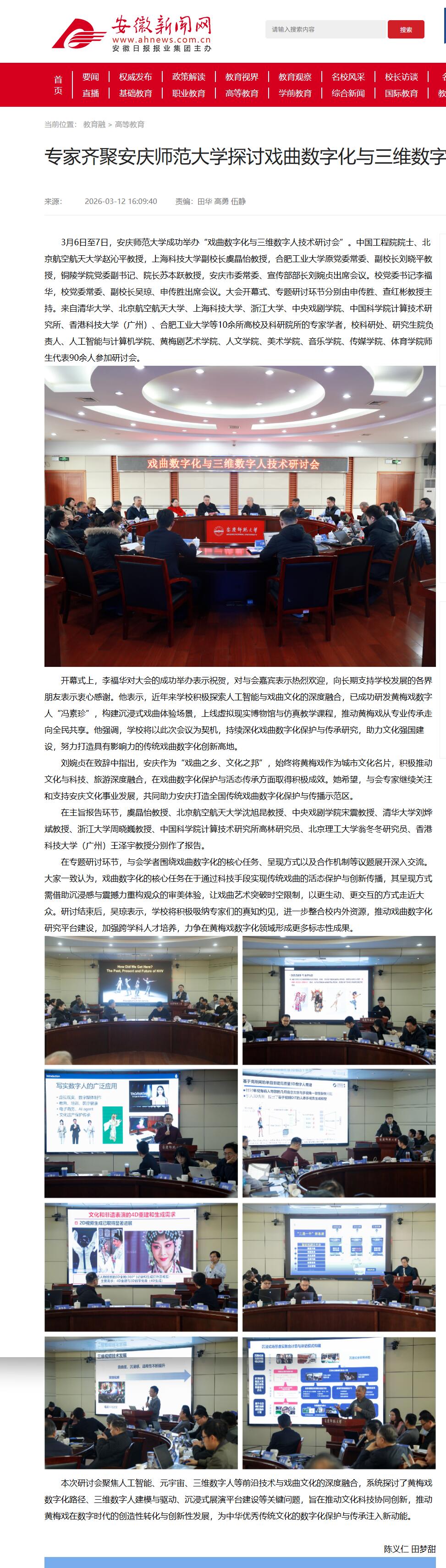 安徽新闻网:专家齐聚beat365英国官网网站探讨戏曲数字化与三维数字人技术