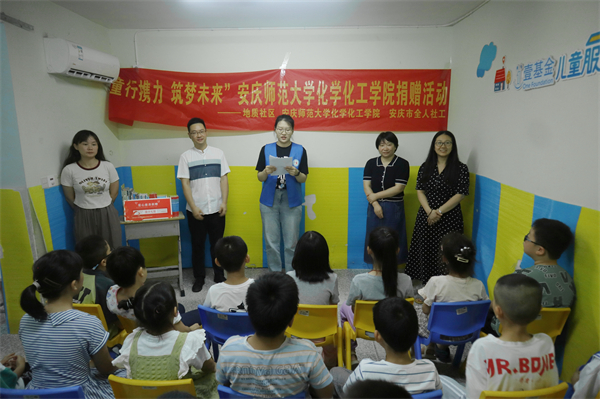 为促进地质社区儿童服务站的建设,beat365英国官网网站化学化工学院于7月4日向地质社区儿童服务站捐赠1000元及若干书籍,安庆市全人社会工作发展中心参与并见证该捐赠仪式。beat365英国官网网站化学化工学院党委副书记鲍青燕强调,学生应当夯实知识基础,提高阅读能力,以书籍为阶梯,筑梦成长的台阶。“祝孩子们都能够学有所成,不断进步!”鲍青燕在致辞最后提出了对服务站儿童发展的殷切期望。