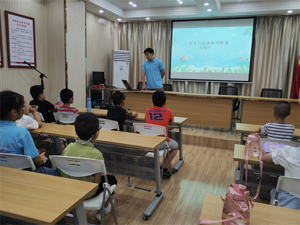“游泳的时候需要注意什么?”“你们都知道哪些防溺水措施?”“如果不小心溺水了,你该怎么做?”……实践团队成员以问题为引,为学生们介绍了溺水的常见原因和危害,并通过文字、图片、视频相结合的方式,用通俗易懂的语言详细讲解游泳时的注意事项。课程负责人赵孜强着重强调了防溺水的“六不一会”,并设置齐声诵读、提问抢答、颁发奖品等互动环节提升教学的趣味性和学生参与的积极性,将安全知识更生动、更高效的传授给学生。