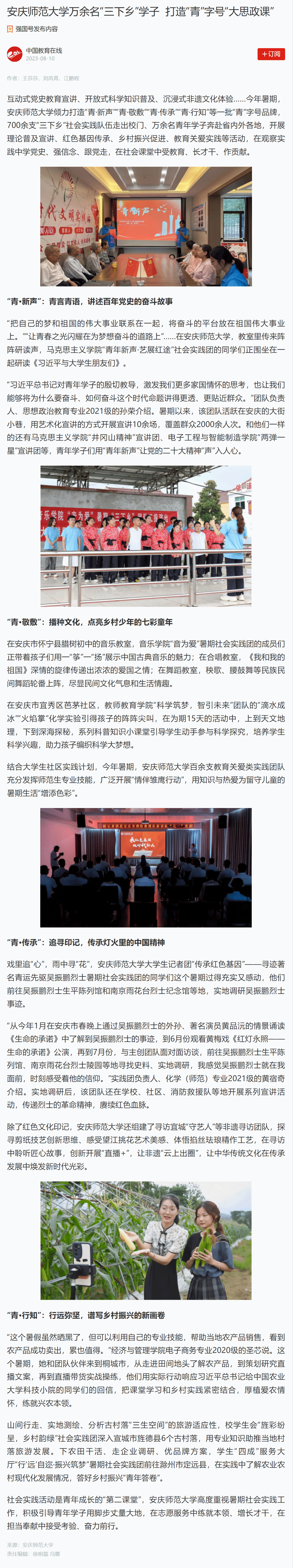 上一篇:学习强国:不断档的爱 安庆师大学子的五年支教情缘