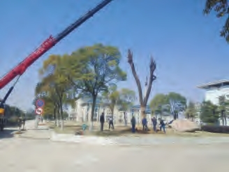 “我和我丈夫都是母校培养的学生,这次正好遇上家里拆迁,就想到把这些树捐给学校,也算是对母校的一种感谢。”