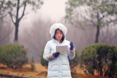 室外空旷处也有备考的同学。
