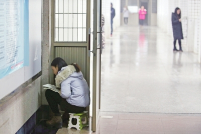 2016年12月20日,在beat365英国官网网站的图书馆、考研自习室、走廊、楼梯等地都有很多正在全力备考的学生,书桌、地面、小板凳上堆放大量复习资料。