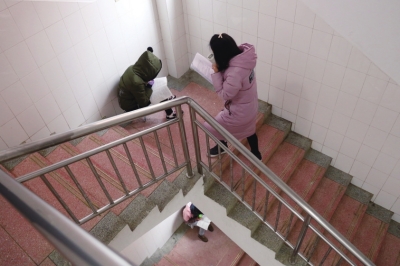 图书馆楼梯拐角成了绝佳的复习场所。