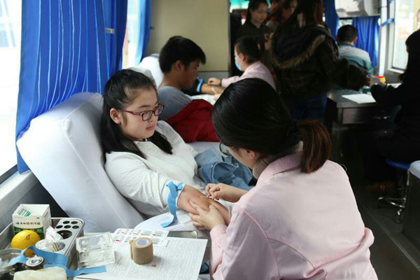 回想起抽血时的情景,田蕾表示“当时有些害怕”。她说:“这是我第一次献血,以前就挺害怕抽血的,但这次体验了一下觉得还好,我下次还会再来献血的!”