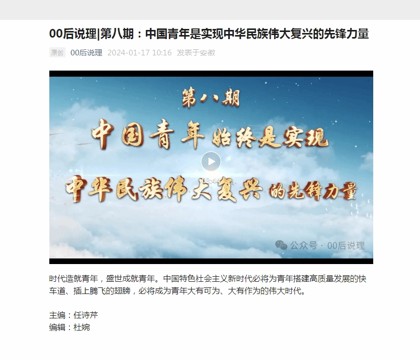 来源:【安徽日报理论宣传视频栏目00后说理】:https://mp.weixin.qq.com/s/wKFdo_XbHByspsLTub8G9A