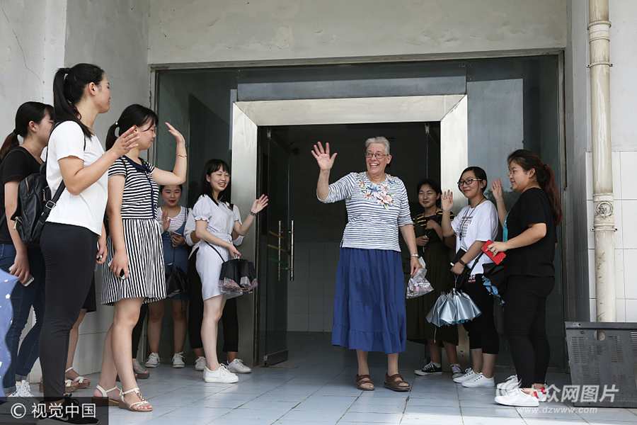 【美国老太中国教书20年 退休回国留下一座图书馆】 After teaching English in Anqing Normal University for almost 20 years, Esther Snader has developed an incredibly harmonious relationship with her students. She worked hard despite some health issues and also built a library with a collection of thousands of books and magazines in her living room for her students to practice their English skills. Before Esther's retirement and return to the US, many students shed tears and took turns hugging their beloved English teacher.