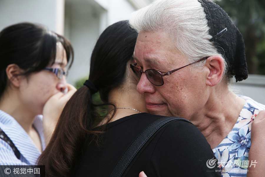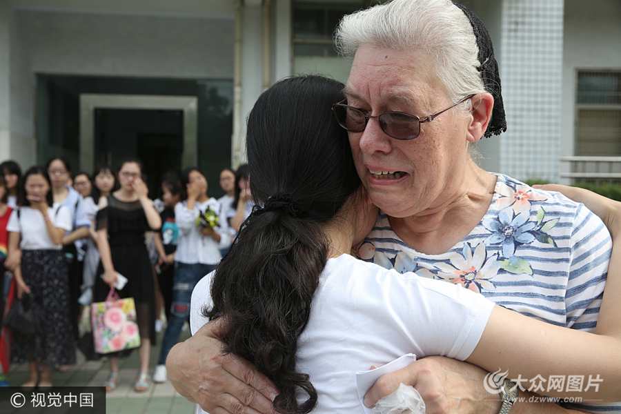 任教20年的外教埃斯特退休回国定居,许多师生闻讯赶来送别,现场许多人泣不成声。