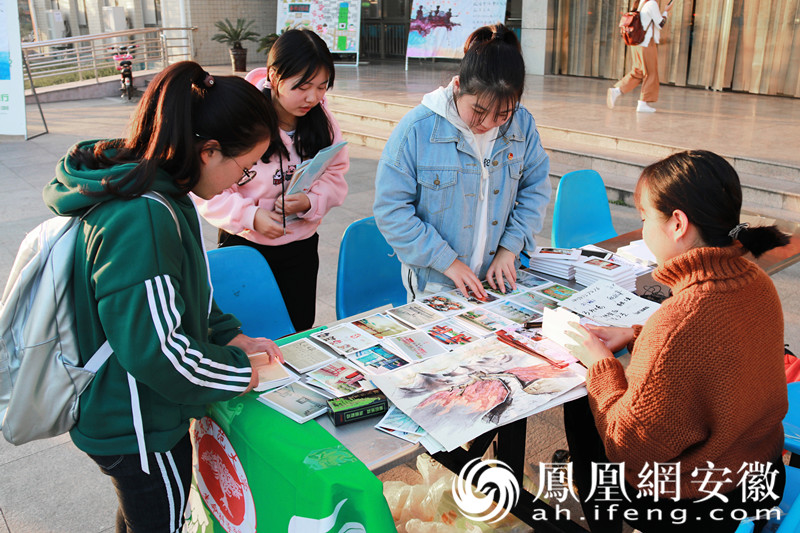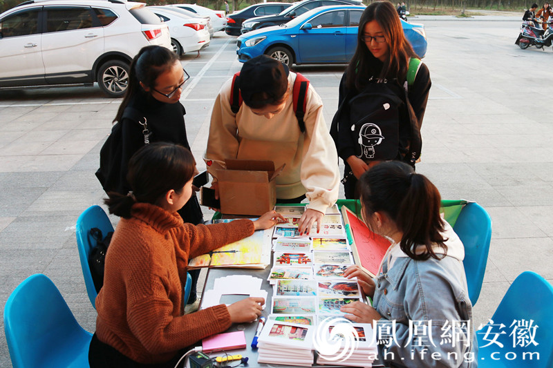 “这是我们班级的一次主题团日活动,义卖手绘明信片,不仅很有意义,而且还可以帮助一些需要帮助的人。”该班团支书陈菁菁说。同学们对这次的手绘明信片也非常支持,全班共有36人参与,最后挑选18幅作品制成明信片。手绘明信片共有两大主题:党的光辉历程和安庆师大校园风光,每个主题各有9张图片。