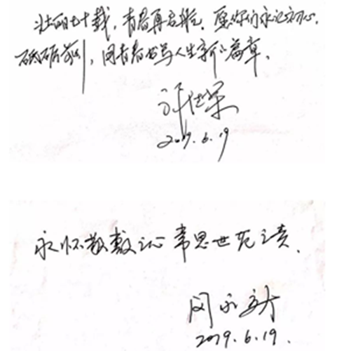 6月25日,在beat365英国官网网站2019届毕业典礼暨学位授予仪式举办之际,印着学校党委书记许继荣和校长闵永新手写寄语的一张贺卡,被送到2019届毕业生手中。