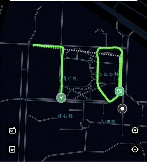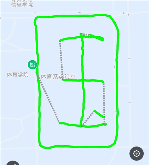 先绕着操场外围跑出“国”的外框,再进入操场内部跑出“玉”字。跑出横的笔画后,便要停止软件,再继续完成下一个笔画。因为笔画最多,生卫部和体育部的所有成员跑了将近1200米。“虽然很累,但是我很自豪。”网络与新媒体专业2019(2)班的葛星月说。