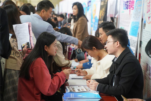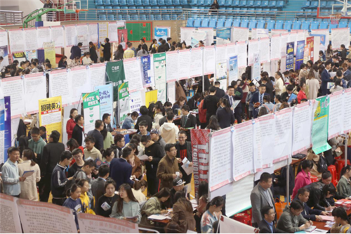 双选会开始,毕业生带着简历陆续进入会场,在感兴趣的招聘海报前驻足观看,以寻找适合自己的职业岗位。应聘者除了询问用人单位招聘要求和工资待遇,还对工作地点和环境等条件表示关心。招聘方也热情耐心地给予学生详细的解答。