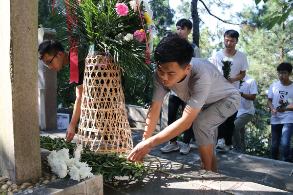 当天清晨,安庆师大团委负责人、部分团干部和团员青年代表前往刘文典先生墓园,敬献了花篮和鲜花,表达了对刘文典先生的深切追念和崇高敬意。校团委负责人现场向师生们介绍了刘先生主持安徽大学时期的佳话、学术成就和爱国情怀。(文/朱丽萍 庞彦堃 图/周正武 李金昭 朱羽)