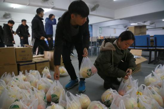 “另外,水果我们送了柚子和橙子,寓意也很丰富。”章新雯说,“柚子就是‘保佑’的意思,保佑考研的学长学姐们身体健康。橙子就是‘心想事成’的意思,希望考研的他们都能考一个自己理想的学校。”