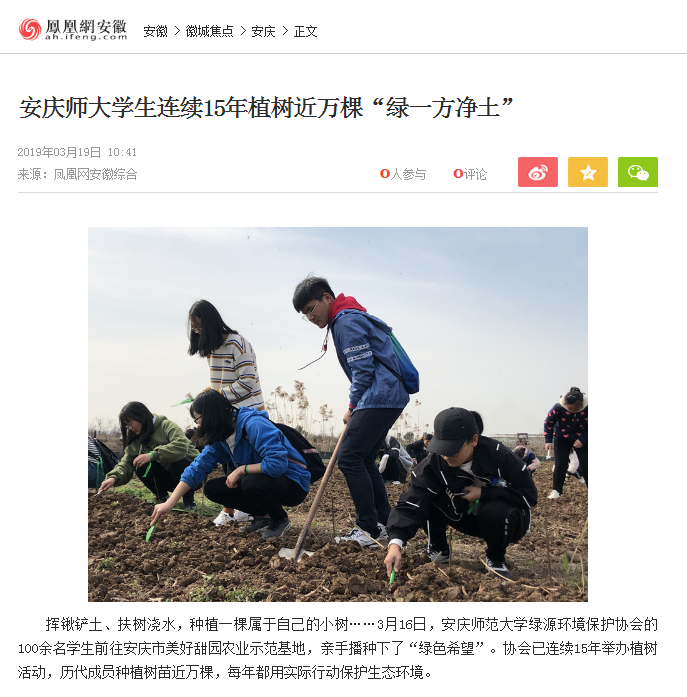 挥锹铲土、扶树浇水,种植一棵属于自己的小树……3月16日,beat365英国官网网站绿源环境保护协会的100余名学生前往安庆市美好甜园农业示范基地,亲手播种下了“绿色希望”。协会已连续15年举办植树活动,历代成员种植树苗近万棵,每年都用实际行动保护生态环境。