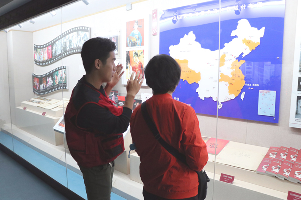 游客殷女士和她的朋友在志愿讲解员们的引导下参观了整个展厅。“我们并不是安庆本地人,但是很喜欢黄梅戏,知道安庆有黄梅戏博物馆就趁假期特意过来看看。”临走时,殷女士对志愿者们表达了赞赏。她表示,志愿者们都很热心有礼貌,很感激志愿者们的讲解,让她们可以进一步了解黄梅戏文化。