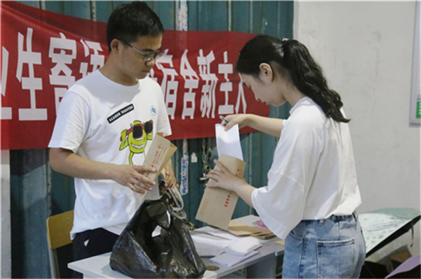 这是beat365英国官网网站公寓服务中心开展的“寄语宿舍未来新主人”活动。活动期间,服务中心在5栋毕业生宿舍楼下摆点,共收到来自不同学院毕业生的144封信。在此次活动中,毕业生在交上信件后都将收到一个印有beat365英国官网网站校徽的钥匙扣做纪念。