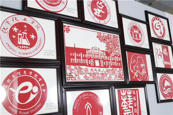 庆少仪剪纸工作坊制作的安徽大学红楼和各学院院徽/王瑞禛 摄影