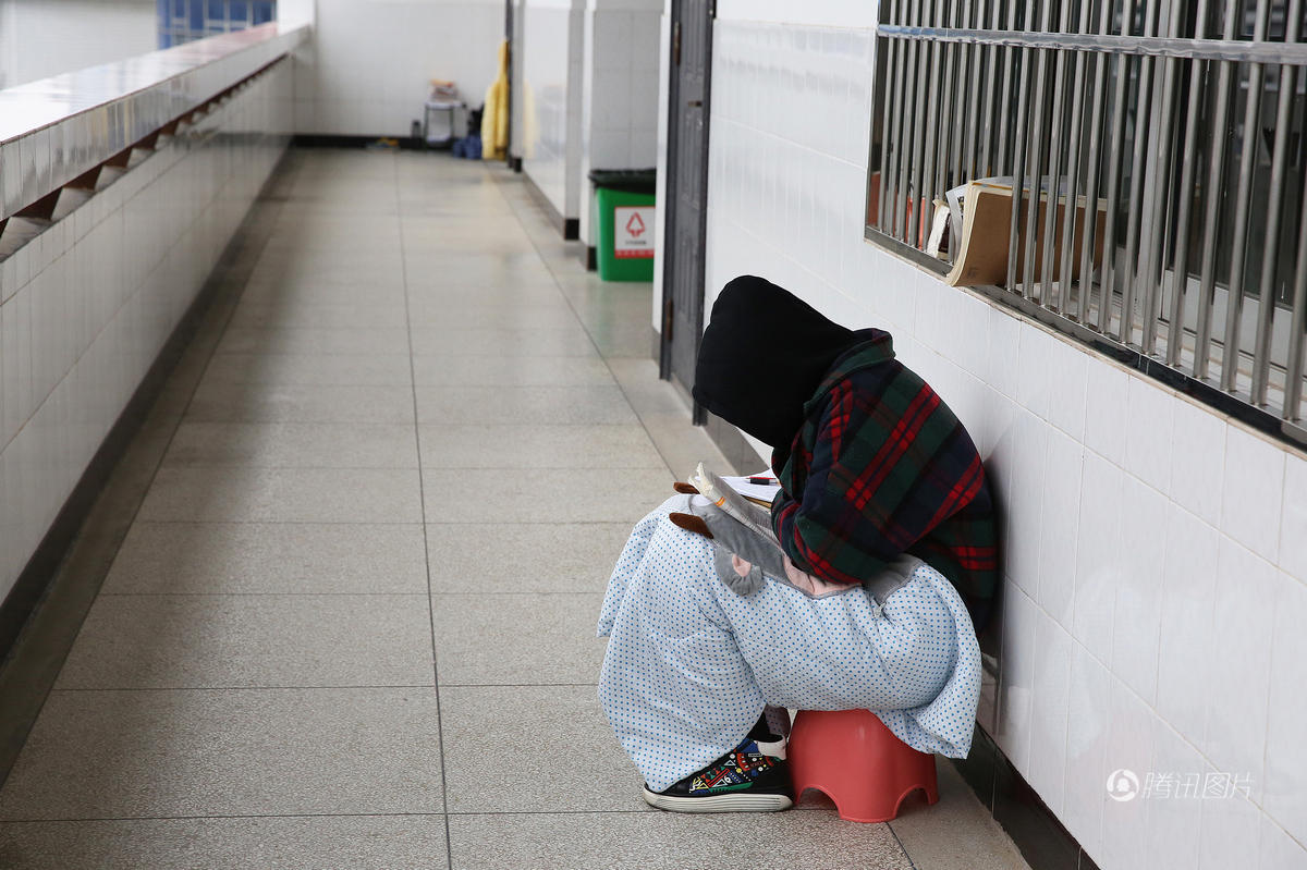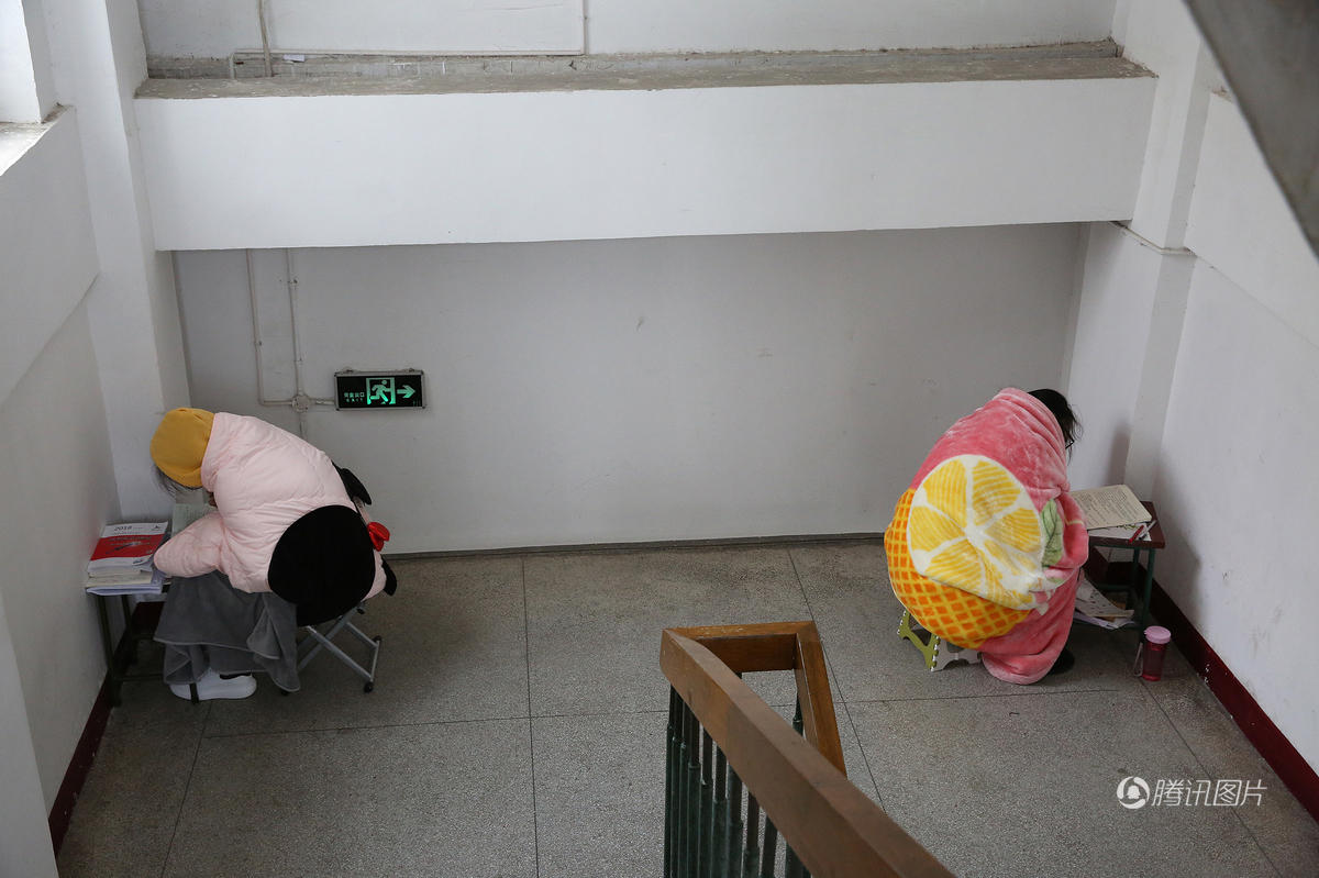 安徽大幅降温 考研生裹毛毯楼道挑灯苦读