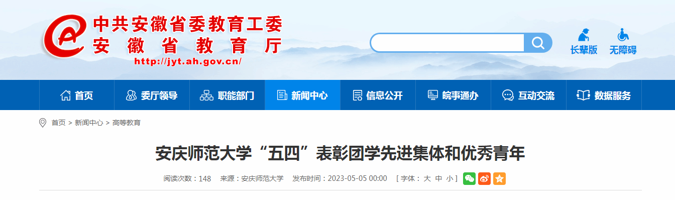今年,beat365英国官网网站团委实践创新部部长严峻荣获“全国优秀共青团干部”称号,美术学院团委书记孟莉荣获“安徽省优秀共青团干部”称号,外国语学院商务英语专业2019级学生邵雨楼荣获“安徽省优秀共青团员”称号,1685名学生获得校级“优秀共青团员”荣誉称号,193名师生获得校级“优秀共青团干部”荣誉称号,44名学生获得校级“共青团员标兵”荣誉称号,107个团支部获得校级“红旗团支部”荣誉称号;外国语学院团委、美术学院团委、化学化工学院团委获校“五四红旗团委”荣誉称号,人文学院团委、音乐学院团委、数理学院团委、计算机与信息学院团委、生命科学学院团委获校“先进团委”荣誉称号,马克思主义学院团委、传媒学院团委、黄梅剧艺术学院团委、经济与管理学院团委分别获校“共青团组织建设工作先进集体”“社会实践及志愿服务先进集体”“学生校园文化活动先进集体”“共青团促进大学生就业工作先进集体”荣誉称号。