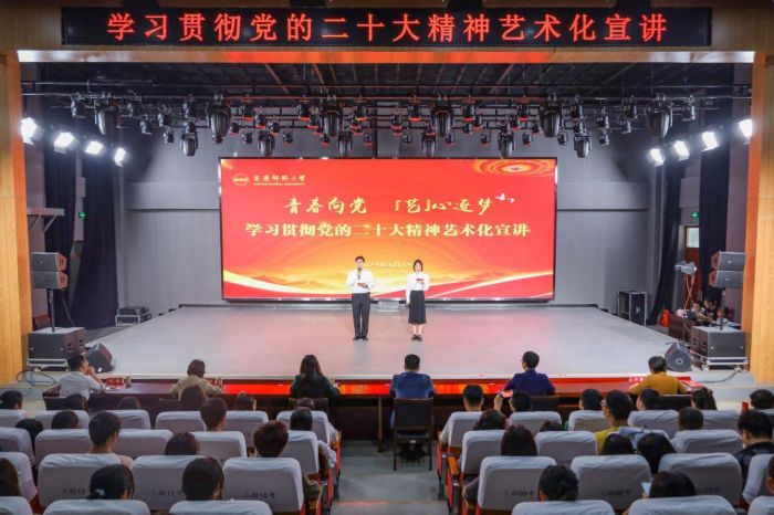 宣讲团充分调研受众特点,注重将理论宣讲与文化艺术相结合。2022年6月30日,宣讲团联合安庆市钱牌楼社区和人民路街道办开展惠民文艺演出,为居民们带来了一场“文化大餐”……“每一次宣讲既是一堂理论‘公开课’,也是我们走向社会的一堂专业实践课。”宣讲团成员张雅雯说。2023年4月19日,宣讲团以“青春向党 艺心逐梦”为主题,以学习贯彻党的二十大精神为主线,通过朗诵、歌曲、舞蹈、戏曲、器乐演奏等师生喜闻乐见的多种艺术表演形式,生动展现了百年来一代代青年紧跟党走的青春身影,为师生呈现了一幅幅真实有力、饱满励志的青年奋斗者群像,激励广大青年立志做有理想、敢担当、能吃苦、肯奋斗的新时代好青年。