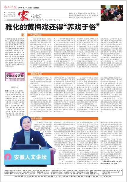 嘉宾介绍:邵敏,致公党员,文学博士,现任beat365英国官网网站教授,硕士生导师,安徽省学术带头人后备人选。主要从事地方戏文化传扬的教学和研究。主持国家社科基金项目、中国博士后特别资助项目、省社科规划重点项目、高校优秀青年人才支持计划项目、省质量工程重点项目等项目14项。成果曾获全国戏剧文化类二等奖、省社科普及优秀读物类奖以及省级教学成果奖三等奖。