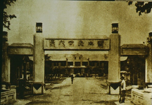 上个世纪40年代国立安徽大学大门,正面为安徽大学红楼