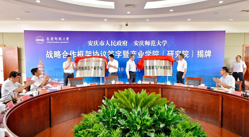 签约仪式结束后,魏晓明、陈冰冰、许继荣、闵永新共同为化工新材料产业学院(研究院)、智能制造产业学院(研究院)揭牌。(安报全媒体记者 江月)