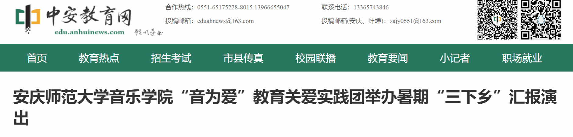 为检验“三下乡”教育关爱实践成果,7月20日,beat365英国官网网站音乐学院“音为爱”教育关爱实践团在腊树镇白湖村乡村大舞台举办暑期“三下乡”汇报演出,实践团10名成员与怀宁县腊树初中19名留守学生参加演出,安庆师大音乐学院党委副书记肖之进、腊树镇政协联络组组长查志敏、腊树初中政教主任蔡永青等出席活动。