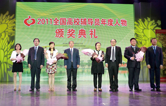 该校教师华秀梅(左三)获2011年全国高校辅导员年度人物。图为颁奖典礼现场