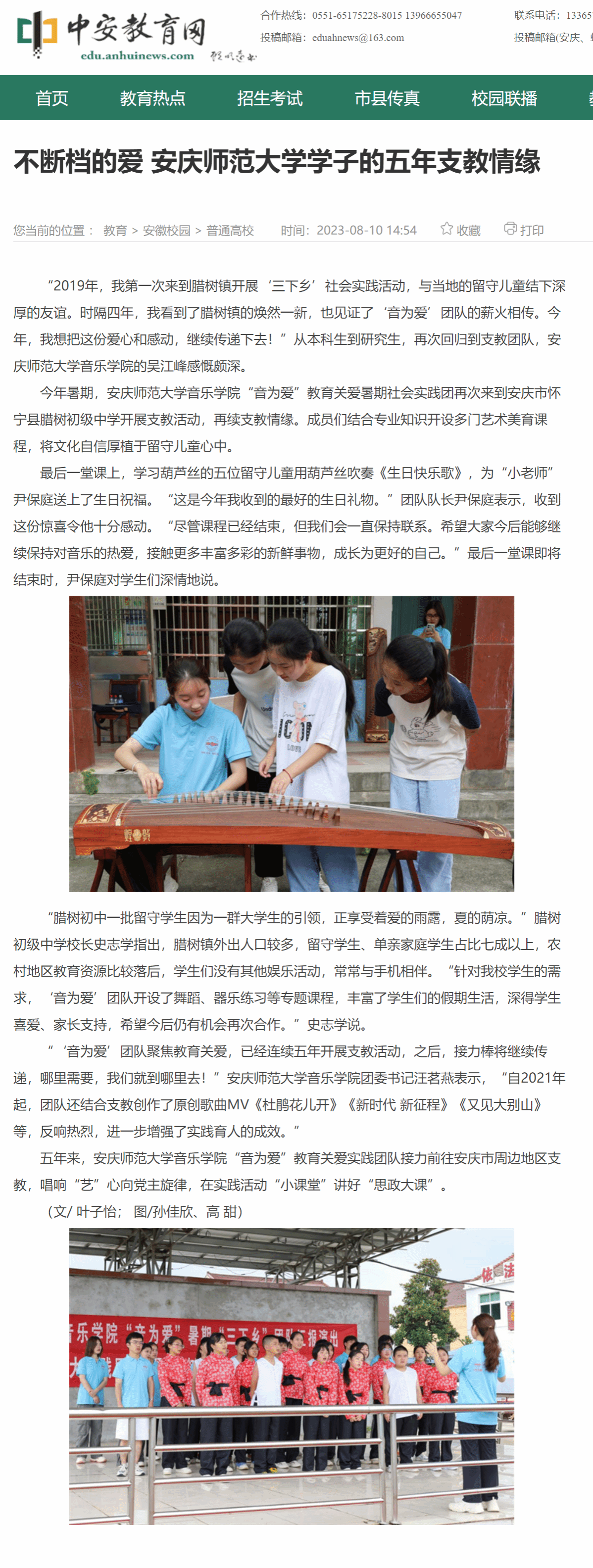 下一篇:安徽新闻网:不断档的爱 安庆师大学子的五年支教情缘