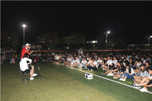 在三位新生的“成人礼”过后,活动现场开始了互动环节,观众们也可以走上“舞台”表演节目。在场的人十分积极,纷纷走上台展现自己,操场上气氛欢快活泼。
