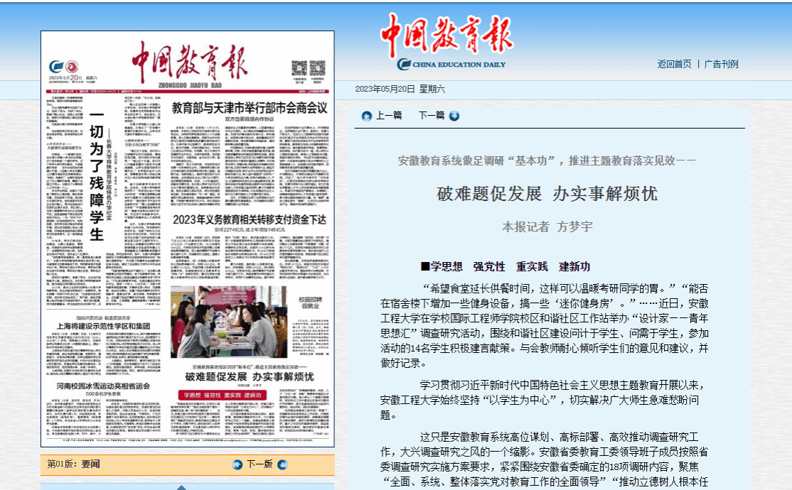 随着主题教育的深入开展,安徽教育系统正不断将主题教育转化为推动安徽教育高质量发展、办好人民满意教育的实际行动。
