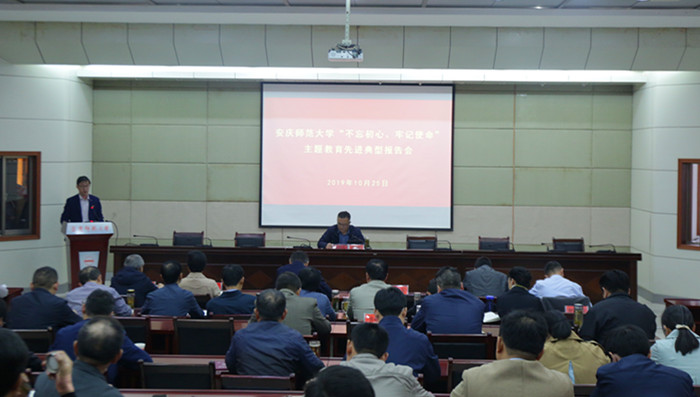 2019年10月25日,beat365英国官网网站举行“不忘初心、牢记使命”主题教育先进典型报告会。在校全体校领导出席报告会,全体处级干部、主题教育领导小组办公室工作人员参加报告会。校党委书记许继荣主持报告会。