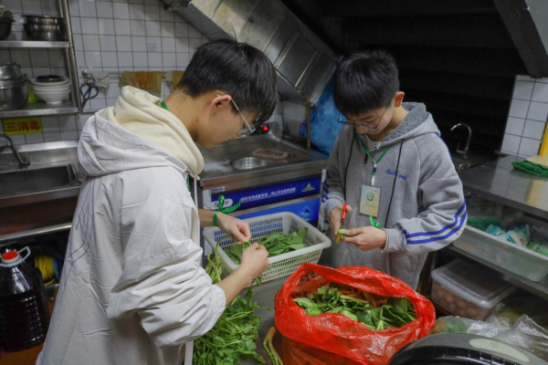 除此之外,詹琪和李灿还帮助店里择菜、洗碗、清理厨余垃圾,并用劳动成果换取了店里的午餐。另一边,从9点一路走到10点半,中国语言文学类专业2022(4)班的音娟四处“碰壁”,始终未能找到合适的工作,但她依旧保持乐观,“这就如同毕业求职,虽让人有些气馁,但也是我们成长的必经之路。”经过不断尝试,音娟最终应聘到了一家汤包馆。