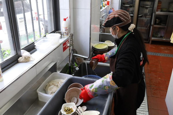 擦桌、洗盘子、倒茶添醋......音娟干起活既麻利又得心应手。为表达谢意,店里的员工“承包”了她的午饭。“来自社会的关怀和温暖让我倍加感动,更感受到赚钱的不易。这次的工作时间虽不长,但我却受益匪浅。”