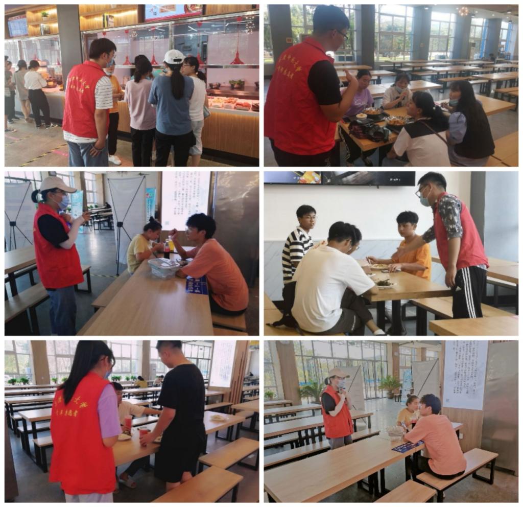 在学生进校身份核验工作中,数理学院团委组织学生前往学校南大门对进入校园的同学进行身份核验,主要是让同学们出示健康码以及今日校园APP扫码签到,确保进入校园师生的安全。在食堂就餐志愿服务过程中,该院青年学生感触颇深,能为大家服务,是一件非常光荣的事。2019数学类3班黄岩松同学说:“作为一名志愿者,在餐厅维持就餐秩序,为同学们营造了一个良好健康的就餐环境。在此期间虽然有些累,需要不停地走动,以便于观察就餐秩序,但是收获很多。虽然刚开始的时候,同学们可能因为不了解情况,但是在我们志愿者提醒之后,大家都是很积极地配合我们的工作。”